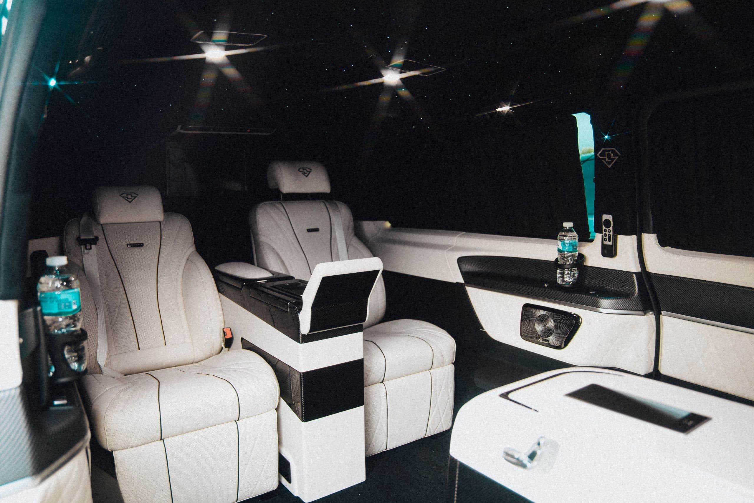 Inside, we’ve got two TV’s. They offer Apple TV, Amazon Prime, multiple music sources and much more so you can have anything you want whilst you’re on your journey.